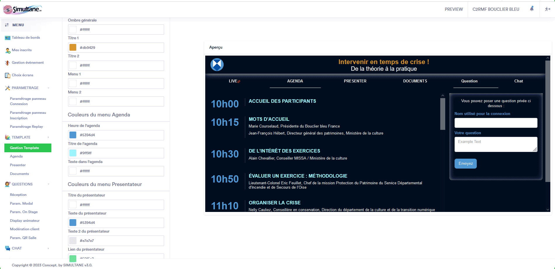 Je tiens à remercier vivement, à travers de ce message, à la société simultane , pour le savoir-faire dans la mise en œuvre "logistique et technique" de la captation en direct de l’événement. Vous avez grandement contribué aux succès.